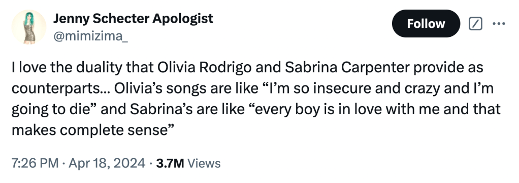 Anyhow, this is it for the music of 2024. Come back next Thursday and Friday for features on the best TV episodes and TV shows of 2024. Two weeks from now, I’ll count down the 25 best songs of the half-decade so far.